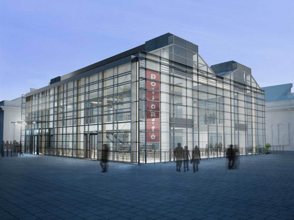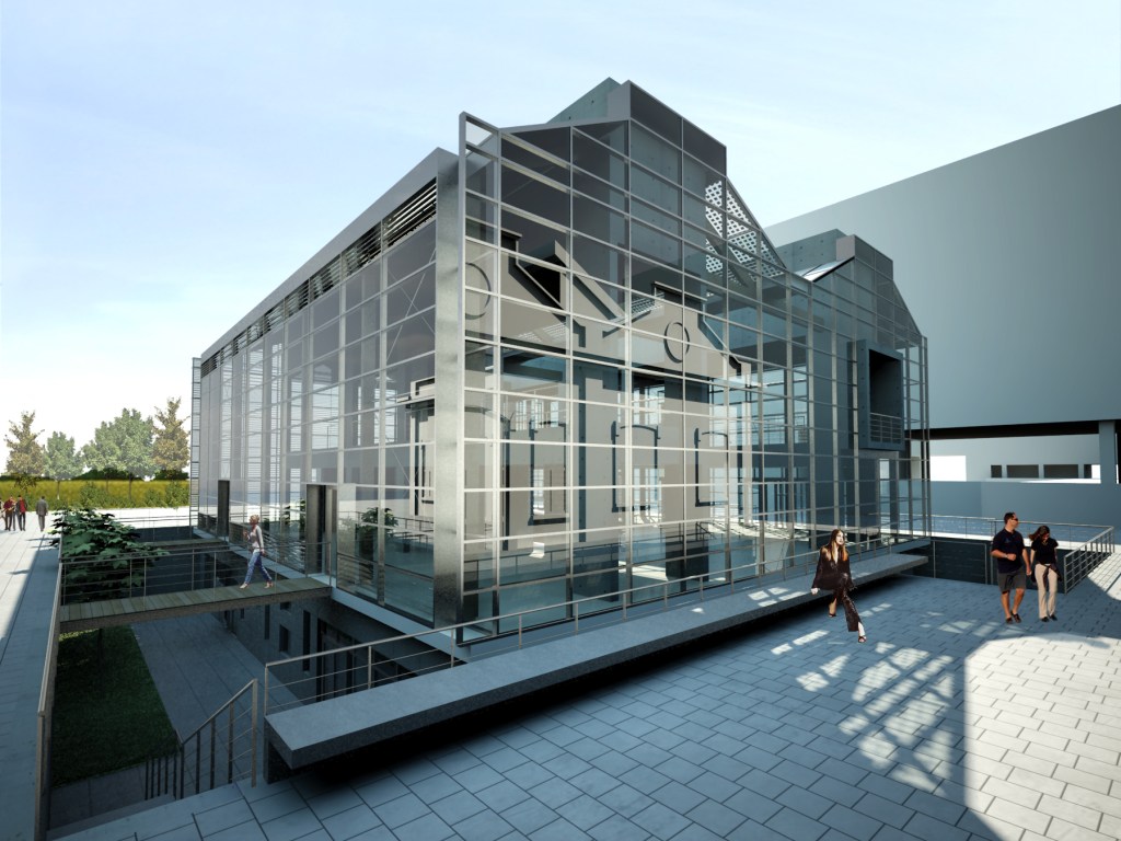 The glass envelope frames the existing structure like a thin membrane, turning its weight into a framework for interaction. The central void works as a spatial commons: students, researchers, and visitors cross paths at different levels, suspended between interior and exterior.