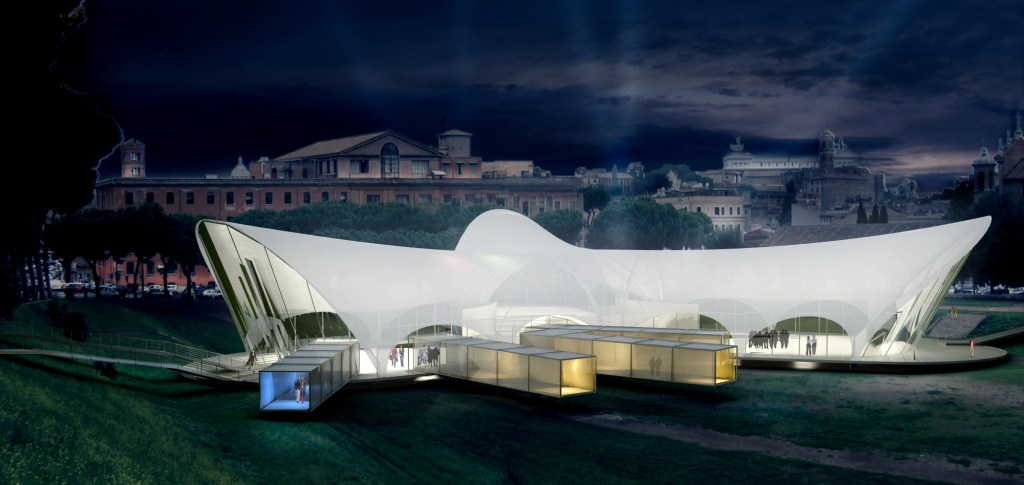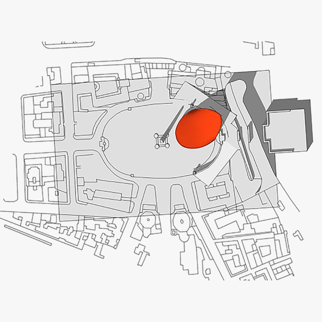 The project proposes the insertion of a contemporary architectural object within two historic places in Rome. Rather than dominating the space, the structure establishes a subtle dialogue with its monumental surroundings.